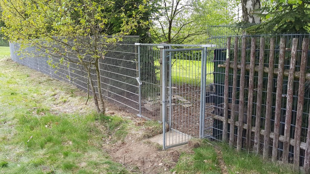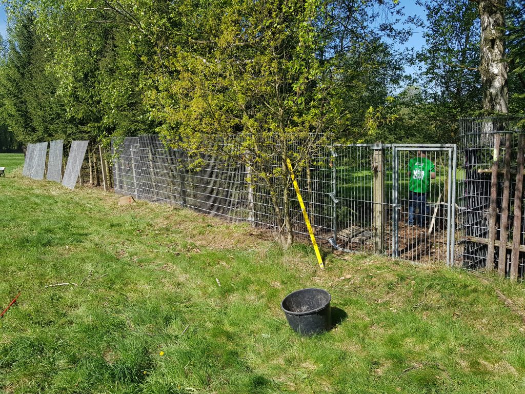 Bereits in 2018 konnten wir im Rahmen eines Projekttages mit fleißigen Helfern einen Teil des alten Holzzaunes im Hundefreiauslauf demontieren und an die vorhandenen Betonsäulen Doppelstabmatten montieren. Dies wurde dann 2021 mit den Auer und Lugauer Ringern vollständig fertiggestellt.