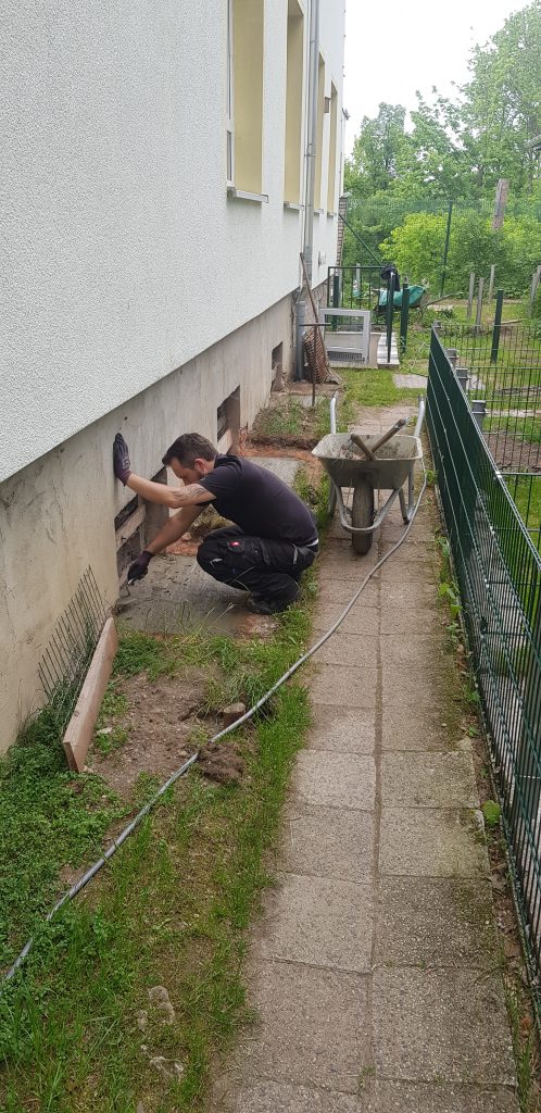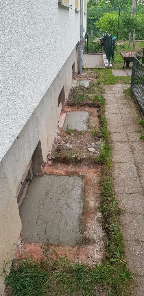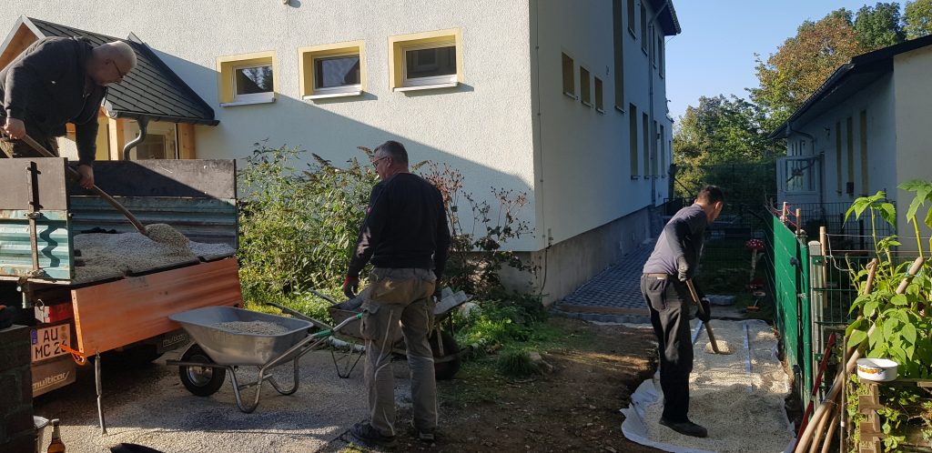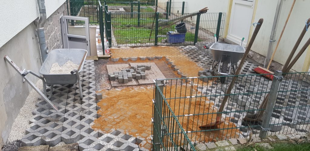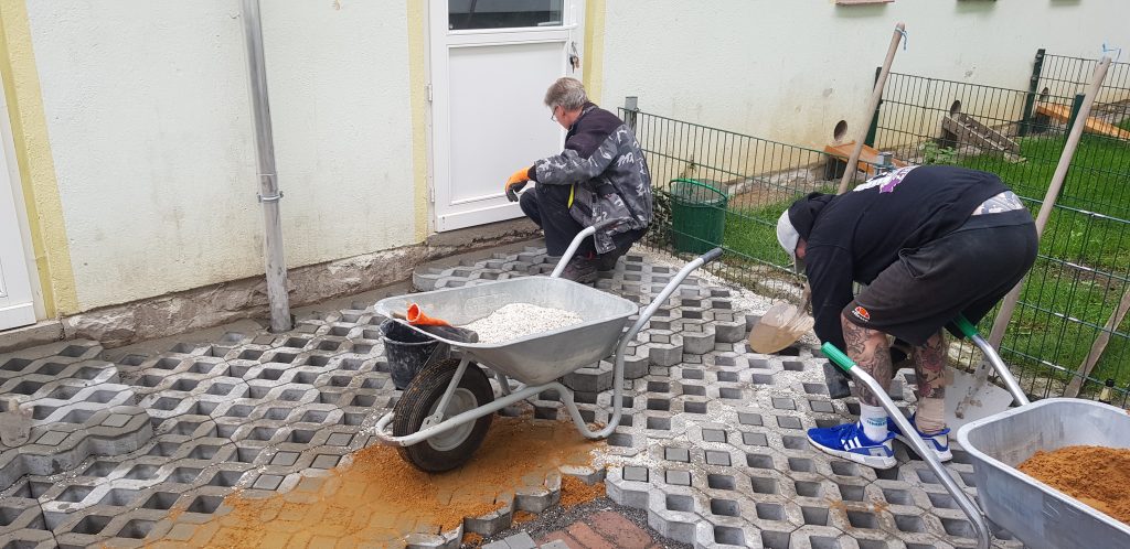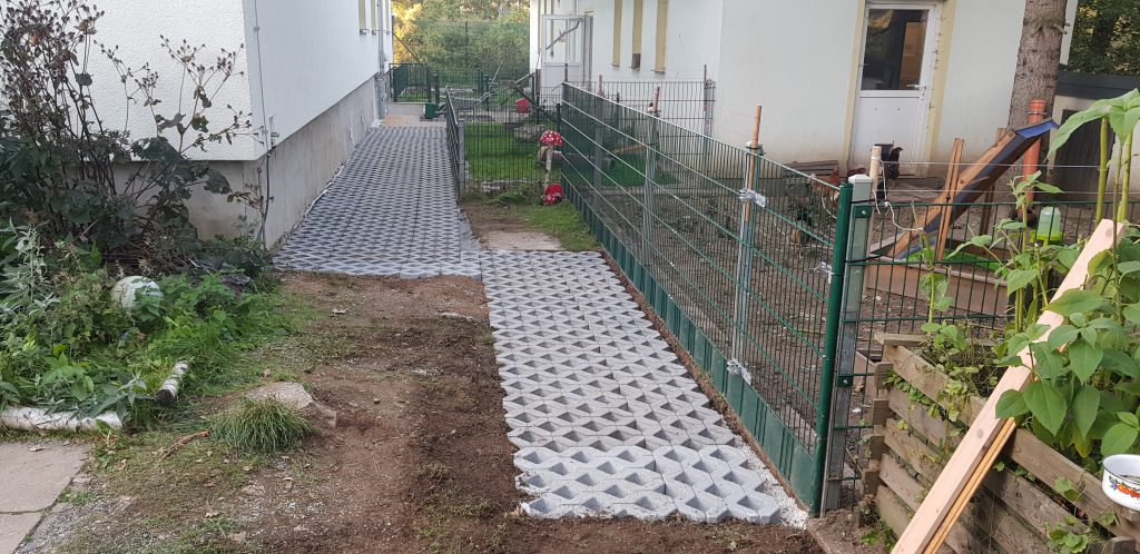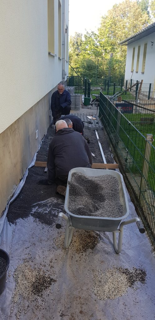 In 2021 nutzten wir nicht nur die Chance mit dem Zaunbauer, die Außenanlage der Kleintierausläufe zu erneuern, sondern wir nahmen dies auch als Anlass, den alten schmalen Weg zwischen Haupthaus und Kleintierhaus durch den Rückbau der Lichtschächte zu verbreitern und neu zu befestigen.
