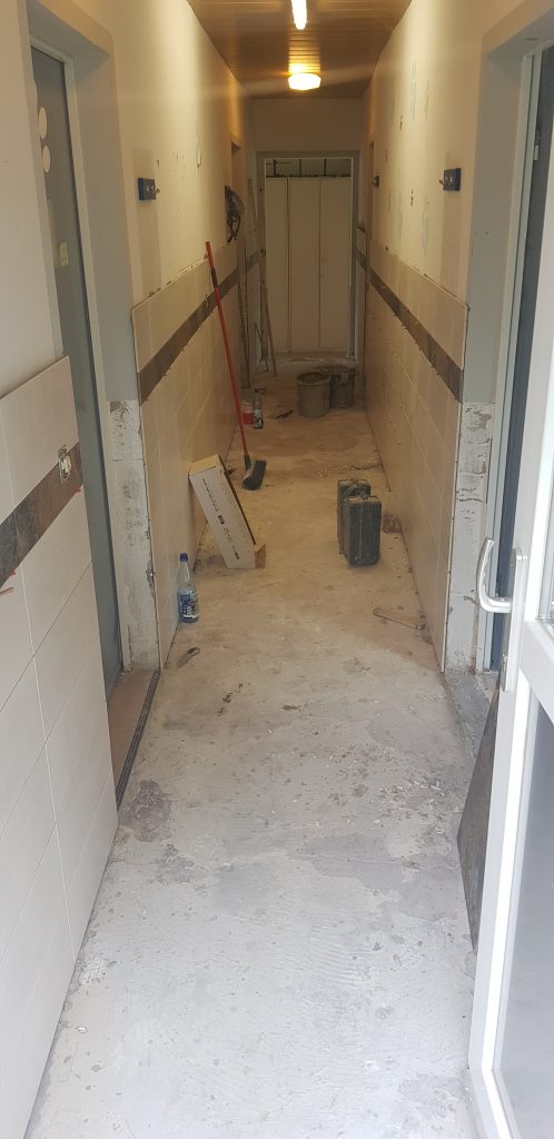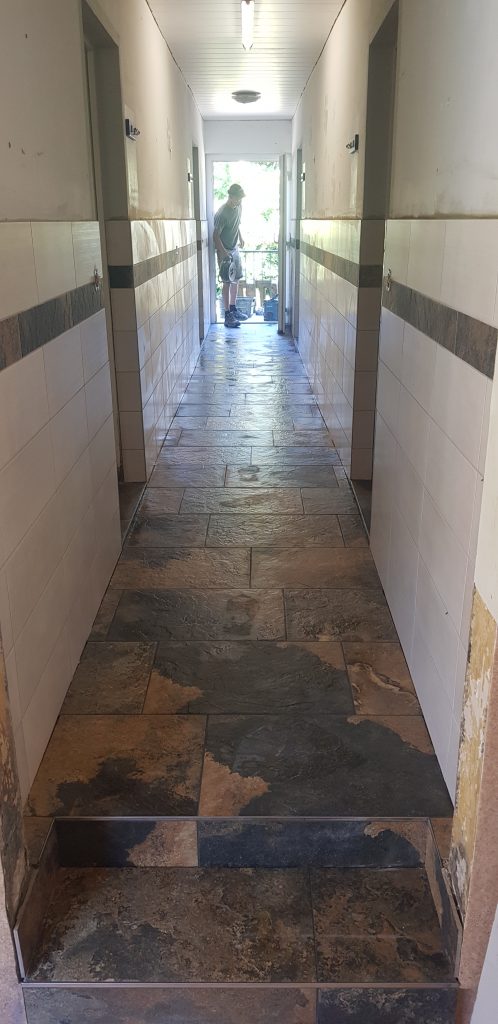Gleichwohl wir zahlreiche Dinge auch in Eigenleistung umsetzen, bedarf es bei einige Sachen auch der externen Hilfe von Experten. So war in 2022 das Fliesen der Zwischengänge einschließlich dem Einbau neuer Zwischentüren nichts für „Freizeitsportler“, sondern hier mussten wieder Profis ran. Ungeachtet dessen haben wir die Malerarbeiten in den 3 Gängen wieder selbst ausgeführt. Dank Fördermittel der Landesdirektion Sachsen konnte dieses Vorhaben darüber hinaus umgesetzt werden.