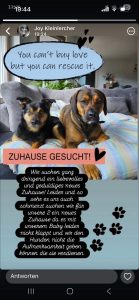 Wenn Sie Interesse an einem der auf dieser Seite vorgestellten Tiere haben, wenden Sie sich bitte direkt an die jeweiligen Kontaktdaten in der Tierbeschreibung. Sollten diese fehlen, nehmen Sie Kontakt mit unserem Tierheim auf.
