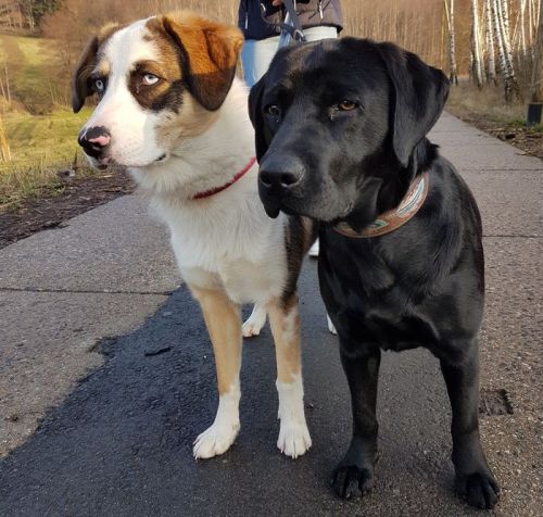 Enuk (links) und Raja (rechts) lebten bisher zusammen. Leider musste sie ihr Besitzer aus gesundheitlichen Gründen bei uns imTierheim abgeben. Da sie vom Wesen her sehr unterschiedlich sind, können wir uns eine getrennte Vermittlung durchaus vorstellen.
