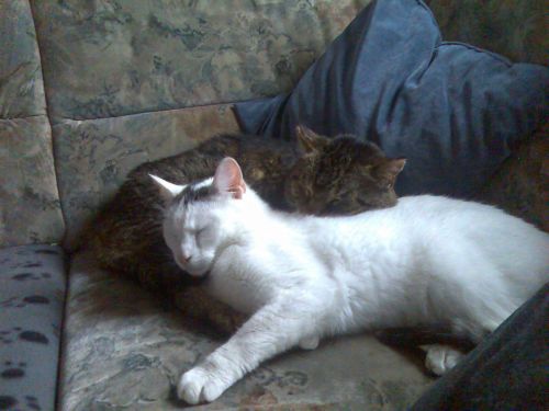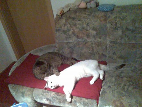 Seit Mai 2009 haben wir ein neues „Appartment“ in Oelsnitz/E. gefunden. Wir fühlen uns hier sau-wohl und werden von der Nasen- bis zur Schwanzspitze verwöhnt… Leckerlis, Kuschel- und Streicheleinheiten, sowie Fitnesstraining für mich (Merlin). Meine Lebensgefährtin Justine hat sich nach anfänglichen Panikattacken auch in eine Schmusemieze verwandelt. Vielen Dank für die liebevolle Pflege von uns beiden.