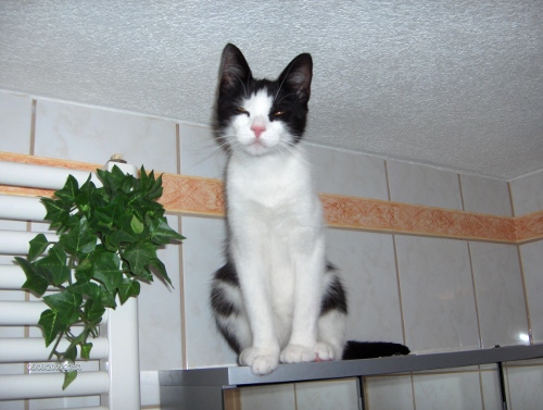 Die zwei Racker sind ja nun schon eine ganze Weile bei uns. Obwohl sie sehr viel Unsinn machen, würden wir sie nie wieder hergeben. Paulchen, der meistens Pauli gerufen wird, ist total verschmust und hört wie ein Hund. Charlie verkriecht sich gern in die Schränke. Früh morgens hat er meistens seine Schmuseattacke, dann wird alles angekuschelt, was in der Nähe ist. Paul weckt uns früh immer mit einem Nasenkuss; abends, wenn wir alle grade ins Bett sind, geht die Toberei los. Den Balken im Wohnzimmer mussten wir komplett räumen, da ist schon so manches zu Bruch gegangen. Sehr gerne sitzt Paul in der Wäschetonne, da guckt dann nur noch der Kopf raus.