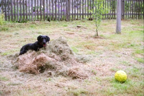 Manchmal kann ich mich nicht entscheiden, ob ich mit meinem Ball im Garten rumtoben oder mich lieber im warmen Heu welzen soll, aber ich hab ja alle Zeit der Welt und mach all die Dinge einfach nacheinander. Seit ein paar Wochen gehe ich auch zur Hundeschule. Die Lehrerin sagt, ich wäre noch etwas leicht abzulenken aber ich bemühe mich sehr…ihr wärt sicherlich stolz auf mich!