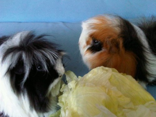 Nachdem wir anfänglich etwas schüchtern waren, haben wir endlich Vertrauen gewonnen und folgen unserem Frauchen auf Schritt und Tritt. Wir haben schon gelernt aus der Hand zu fressen und auf bestimmte Geräusche zu hören. Im Betteln sind wir bereits jetzt schon spitze.