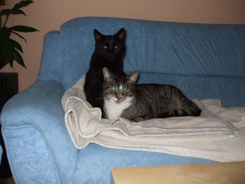 Vor nunmehr über einem Jahr beschlossen wir uns mit Einzug in unsere neue Wohnung auch einen bzw. zwei Stubentiger an unserem neuen Glück teilhaben zu lassen. Wir waren uns sofort einig, dass es sich hierbei um Tierheimbewohner handeln soll – denn wer hat es schon mehr verdient, in ein glückliches neues zu Hause einzuziehen?! Also begaben wir uns kurzerhand ins Tierheim Waldfrieden, um einfach erstmal zu „schauen“. Natürlich ist es dabei nicht geblieben. ;o) Die beiden Racker haben uns vom ersten Blick an in ihren Bann gezogen und somit konnten wir gar nicht mehr nein sagen. Also waren wir von nun an zu viert. Die beiden bereiten uns jeden Tag eine große Freude. Sie waren vom ersten Tag an sehr unkompliziert, stubenrein und brav – auch wenn sie allein daheim sind – und zeigen uns damit wohl ihre Dankbarkeit. Sie haben sich sofort wie zu Hause gefühlt und waren bereits nach kurzer Zeit die Chefs des Wohnzimmers. Wir danken dem Tierheim für die Bereicherung und wünschen für die Zukunft alles, alles Gute!