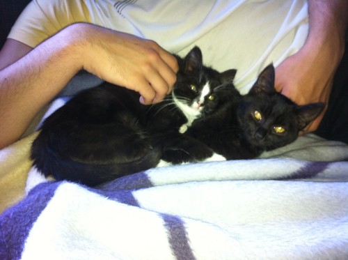 Und wer hätte das einmal gedacht! Ich lasse mich stundenlang knuddeln und rummwurschteln, darf sogar im Wasserbett ab und zu mein Schläfchen halten und Beißen, Kratzen und Fauchen gehören der Vergangenheit an!