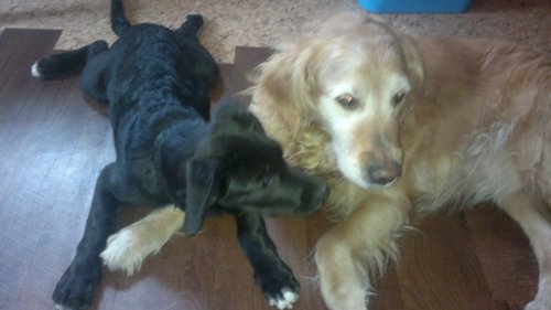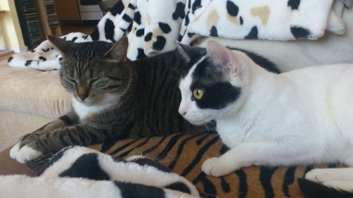 Auf dem Bild bin ich mit meiner großen Schwester Hexe zu sehen (Links Hexe, rechts Flocke)