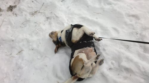 Bazyl liebt lange Spaziergänge und das rumtollen im Schnee.