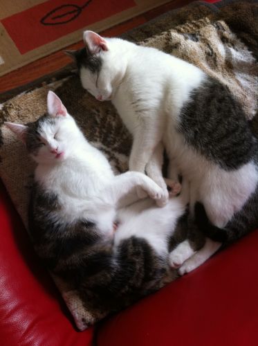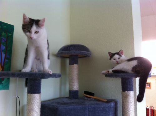 Wir haben im März diesen Jahres Fräulein Einstein (jetzt Krümel) und Olaf (jetzt Fussel) zu uns nach Hause geholt. Jetzt sind 4 Monate vergangen und wir haben uns super aneinander gewöhnt. Wir sind sehr froh die beiden bei uns zu haben, sie halten uns zwar ganz schön auf Trapp, aber machen uns auch sehr viel Freude 🙂